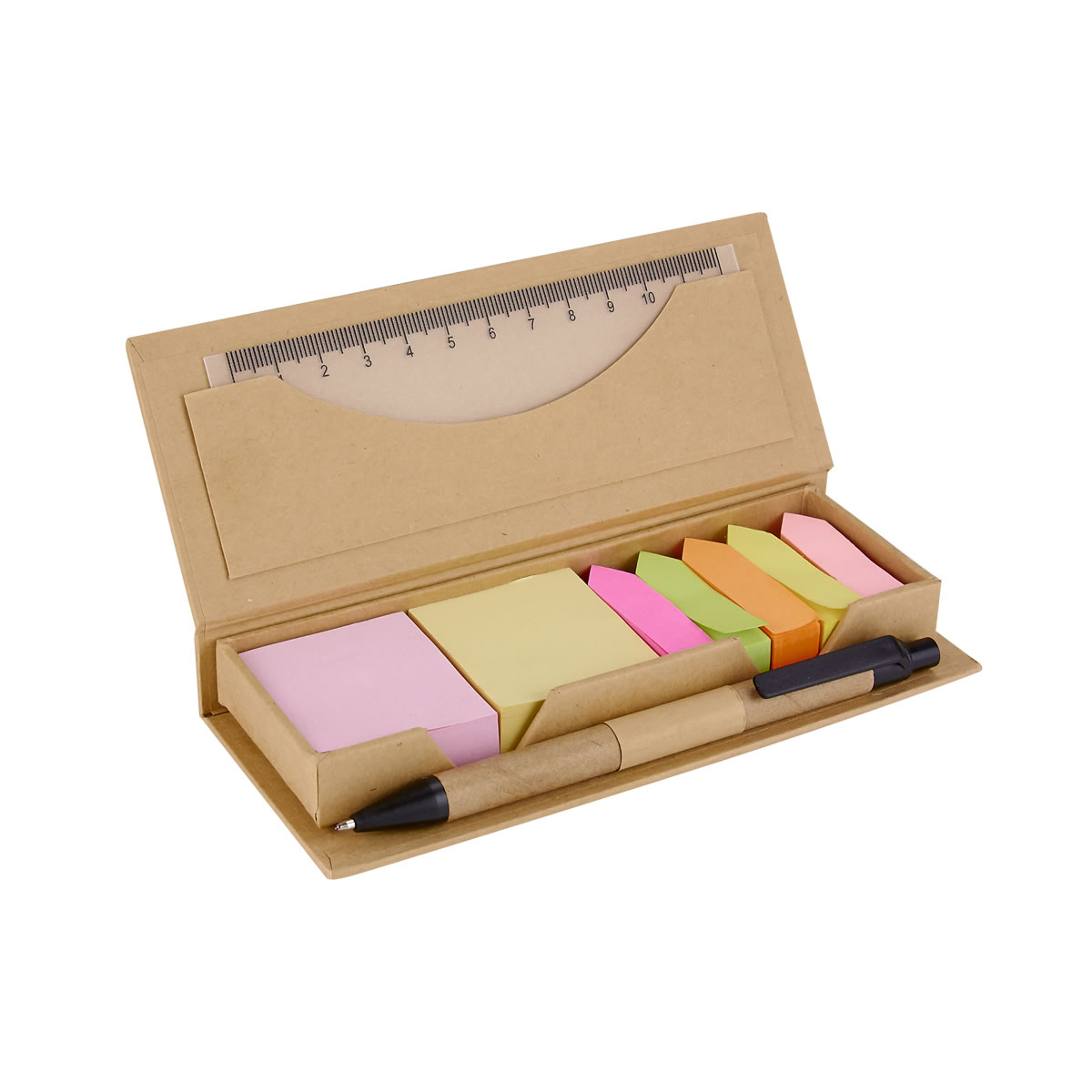 PORTA NOTAS INZIA(Incluye notas adheribles de diferentes colores, regla de 12 cm y bolígrafo ecológico.)